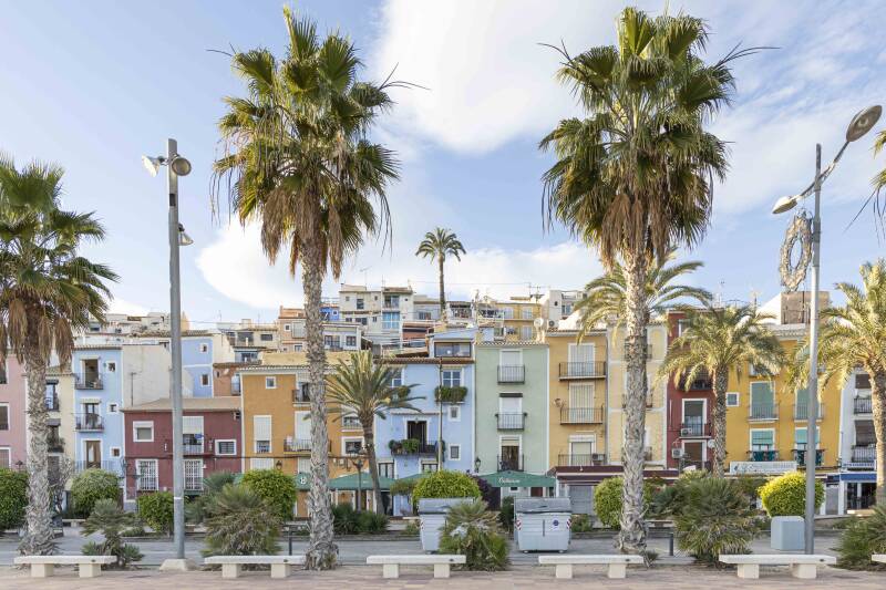 Villajoyosa is bekend voor zijn kleurrijke huizen en chocolade van Valor.